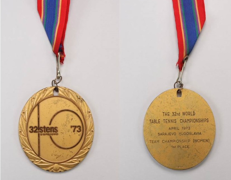 1973년 제32회 사라예보 세계탁구선수권대회 여자 단체전 금메달 앞면·뒷면