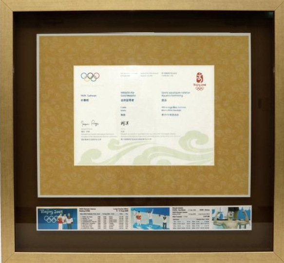 2008년 8월 10일에는 세계는 베이징 올림픽 자유형 남자 400m 결승선을 숨죽여 바라보고 있었다. 기증자는 당시 아시안기록인 3분 41초 09로 올림픽의 문턱을 넘어섰다. 아시아에서 자유형 우승자가 나온 것은 1936년 베를린 올림픽 이후 72년 만에 처음이기도 했다. 이 우승은 단순한 개인의 우승을 넘어 아시아인으로서의 신체적 조건과 한계를 극복한 장면으로 국민들에게 희열과 감동을 주었다. 우승 뒤에는 기증자의 노력과 더불어 금메달을 획득하기 위한 과학적 훈련프로그램인 "박태환 골드 프로젝트"가 있었다. 이 훈련은 성공적인 결과에 힘입어 많은 체육지도자와 학자들에게 널리 공유되었고, 여러 선수들에게 적용되었다. 또한, 기증자는 수영 선수들에게 큰 자극제인 동시에 대한민국 수영 발전의 견인차 역할을 하였다. 즉, 기증자의 성과는 대한민국의 수영 역사를 새로이 쓴 큰 사건이었다.