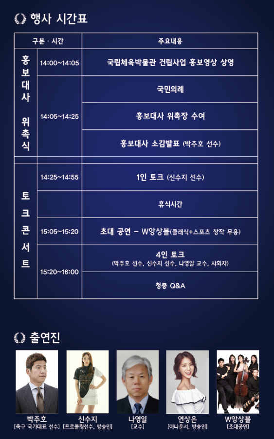 국립체육박물관 홍보대사 위촉식 & 토크콘서트 개최 안내