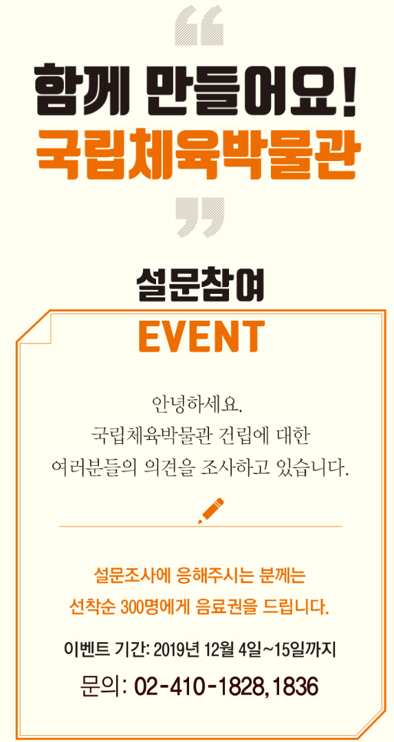 국립체육박물관 건립에 대한 여러분들의 의견을 조사하고 있습니다.